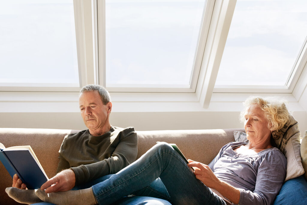 Controlla al meglio la ventilazione in casa con una finestra per tetti VELUX con apertura a bilico. Una finestra che si apre facilmente con un solo gesto, anche se al di sotto si trovano mobili.