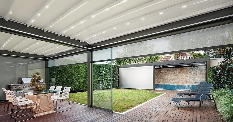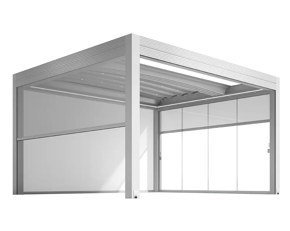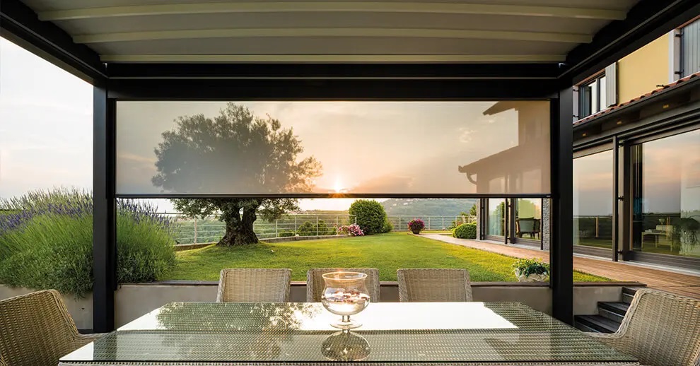 Se lo desideri, puoi scegliere una Pergola a 90° che integra una delle seguenti tipologie di chiusura laterale: