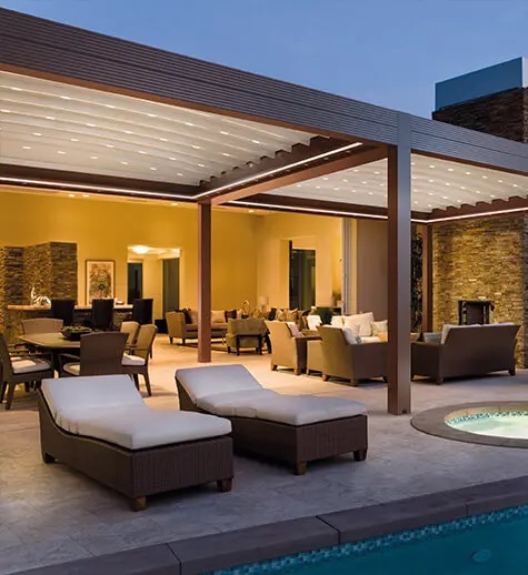 Grazie ai sensori sole, pioggia e vento i prodotti rispondono autonomamente agli agenti atmosferici, lasciandovi solo la preoccupazione di godervi al meglio il vostro nuovo spazio di benessere.