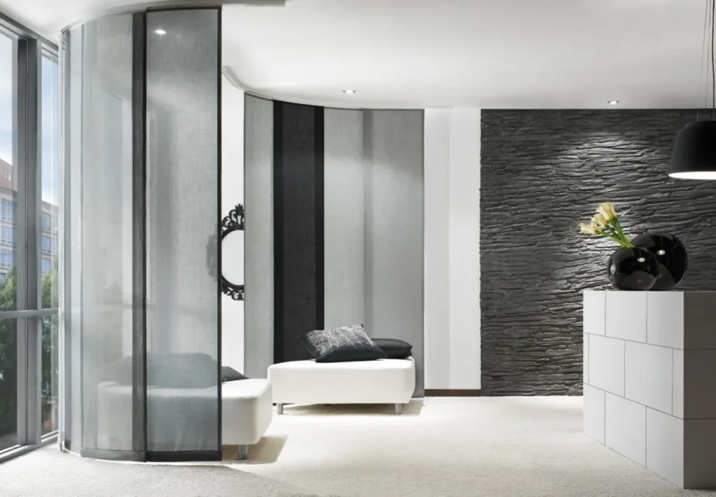 L’idea dei pannelli scorrevoli è importata dalla cultura giapponese, offrendo un design creativo e di vero impatto per gli interni. Le tende a pannello MI.Ba. sono indicate non solo per l’oscuramento di finestre di grandi dimensioni, ma anche per la divisione elegante degli ambienti.