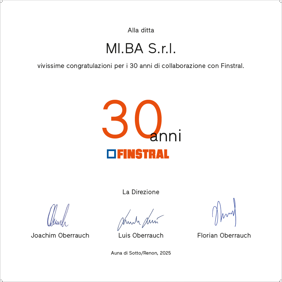 Se anche tu, come i nostri clienti, vuoi finestre nuove, che siano garantite, performanti e durature per almeno i prossimi trent’anni, affidati alla Mi.Ba..