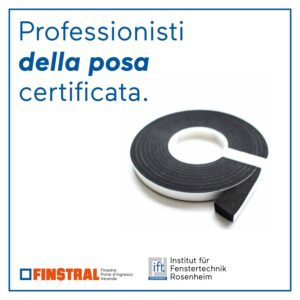 La nostra azienda dà un grande valore alla qualità di esecuzione della posa, ed ha scelto di aderire al progetto “Professionisti della posa certificata” che Finstral, azienda alto atesina tra i leader europei nel settore dei serramenti, ha inaugurato nel 2013 in collaborazione con l’Istituto ift di Rosenheim in Germania – un prestigioso ente internazionale e indipendente che si occupa di certificazioni in edilizia.